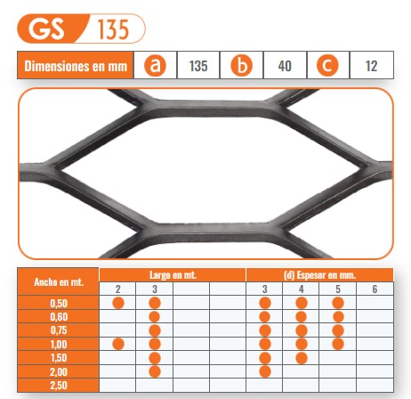 0,50 mt., 0,60 mt., 0,75 mt., 1,00 mt., 1,50 mt., 2,00 mt.