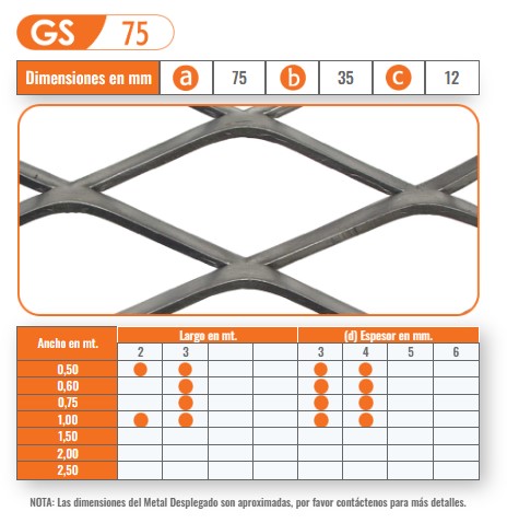 | ancho | 0,50 mt., 0,60 mt., 0,75 mt., 1,00 mt., 1,50 mt. |